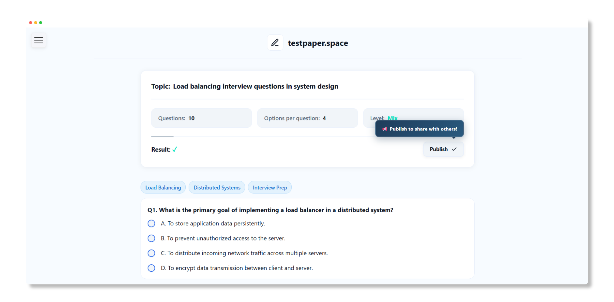 Paste a passage or name a topic and let testpaper.space generate balanced questions with distractors and answers. Perfect for quick mock tests, revision sheets, and classroom practice.